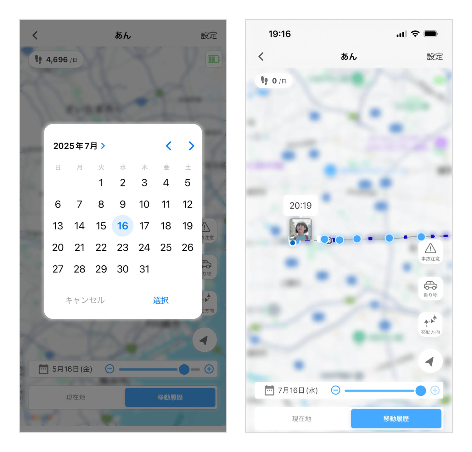 - 過去の移動履歴の確認