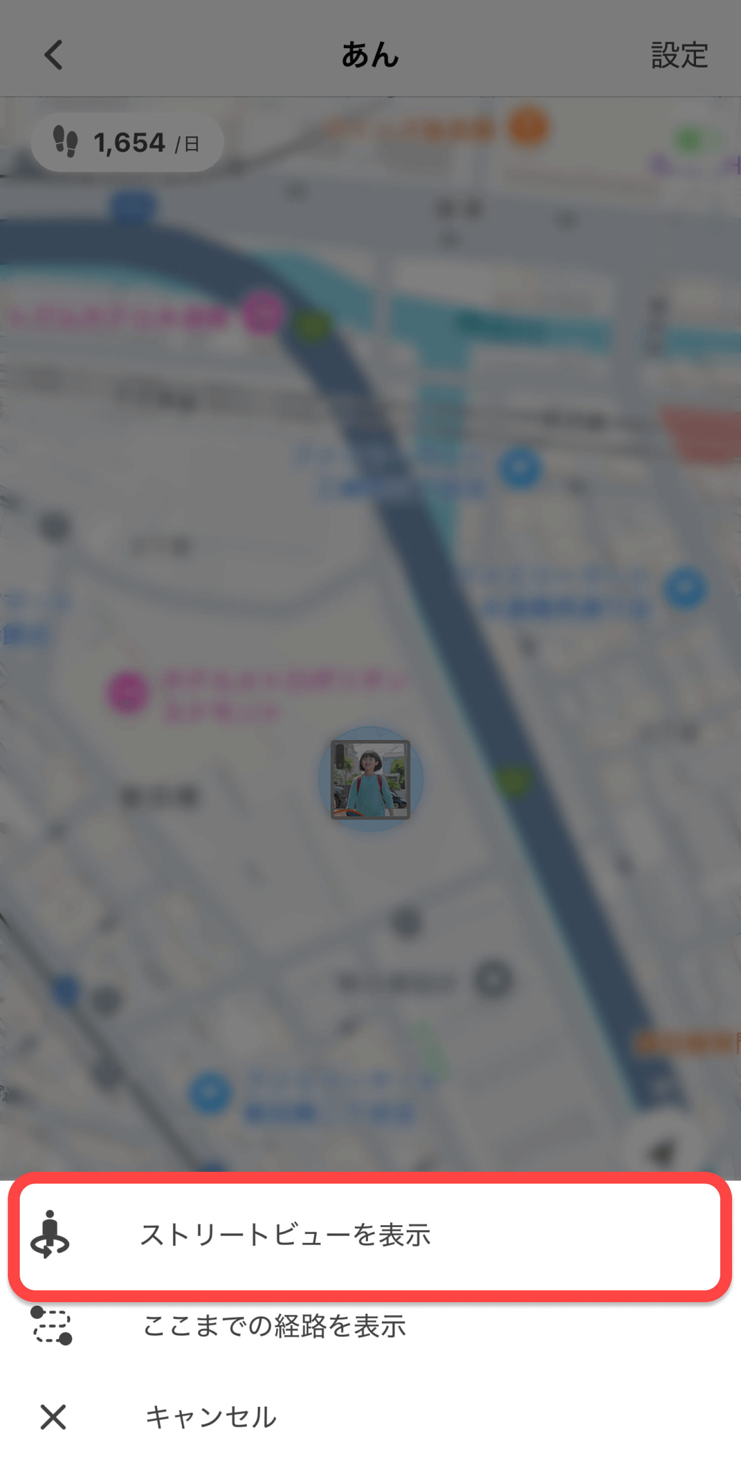 特に初めて訪れる場所では、アプリの「現在地」からストリートビューを選択すると、子どもの現在地の実際の周囲の状況を把握でき、合流する際の大きな助けになります。また、「ここまでの経路を表示」機能を使えば、保護者の場所から子どもの場所までのルートがGoogleマップで示されるため、広大な敷地内でもスムーズに合流できるでしょう。